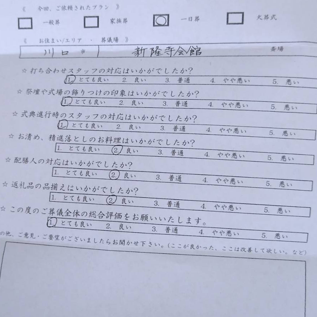 ひかりセレモニーを利用されたお客様の声です。